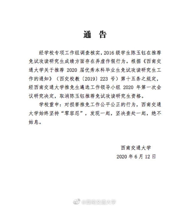 西南交大的回應(yīng)與澄清